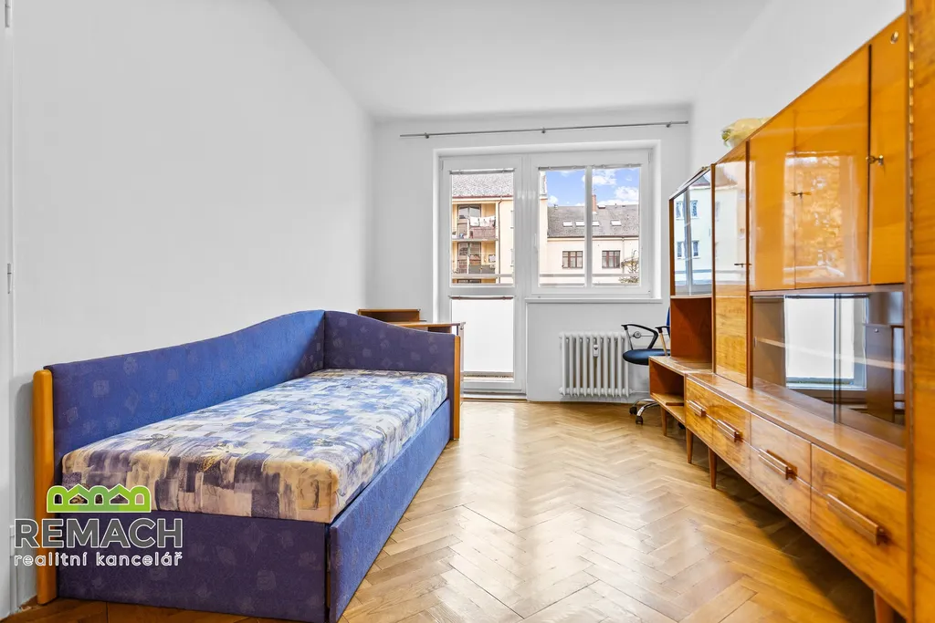 Dispozice: 3+1 - vstupní chodba s úložnou skříní ve výklenku, velký obývací pokoj s výhledem na zámek, moderně zrekonstruovanou kuchyň s prostorem pro jídelní kout, ložnice s výstupem na balkon, dětský pokoj, koupelna s vanou a samostatné WC.