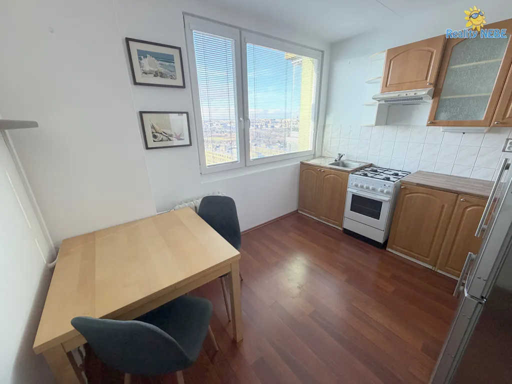 Nabízíme k dlouhodobému pronájmu byt 2+kk o velikosti 33 m2 s lodžií 3 m2 ve 13. patře (13/21 NP) revitalizovaného domu v ulici Jabloňová, Praha 10, Zahradní Město.