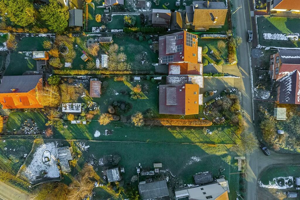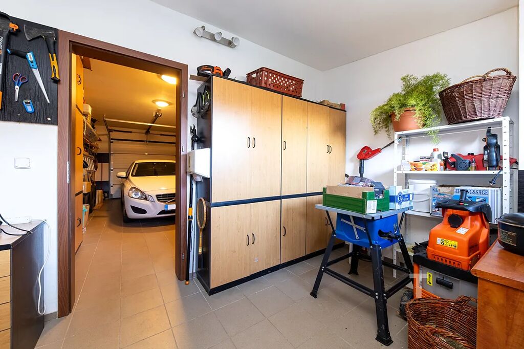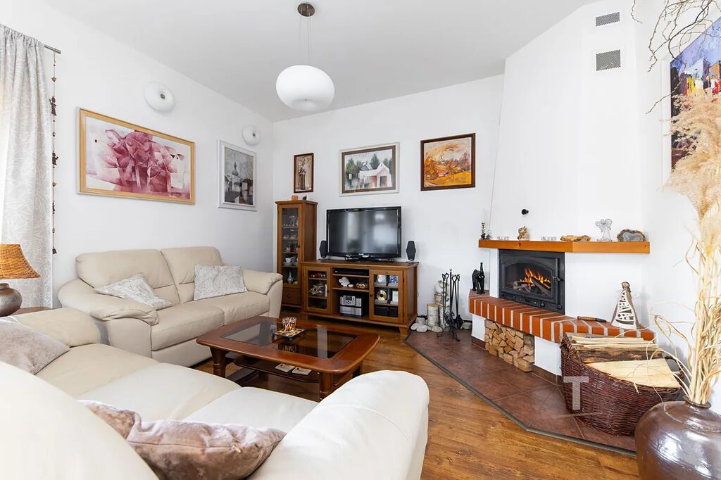 Vytápění je řešeno tepelným čerpadlem v kombinaci s podlahovým vytápěním a radiátory a útulnou atmosféru obývacího pokoje podtrhuje krb, který tvoří přirozené centrum rodinného života. Celková užitná plocha domu činí přibližně 176 m² včetně terasy (cca 10,5 m²) a garáže (cca 38 m²), jejíž součástí je praktická dílna se vstupem přímo z interiéru.