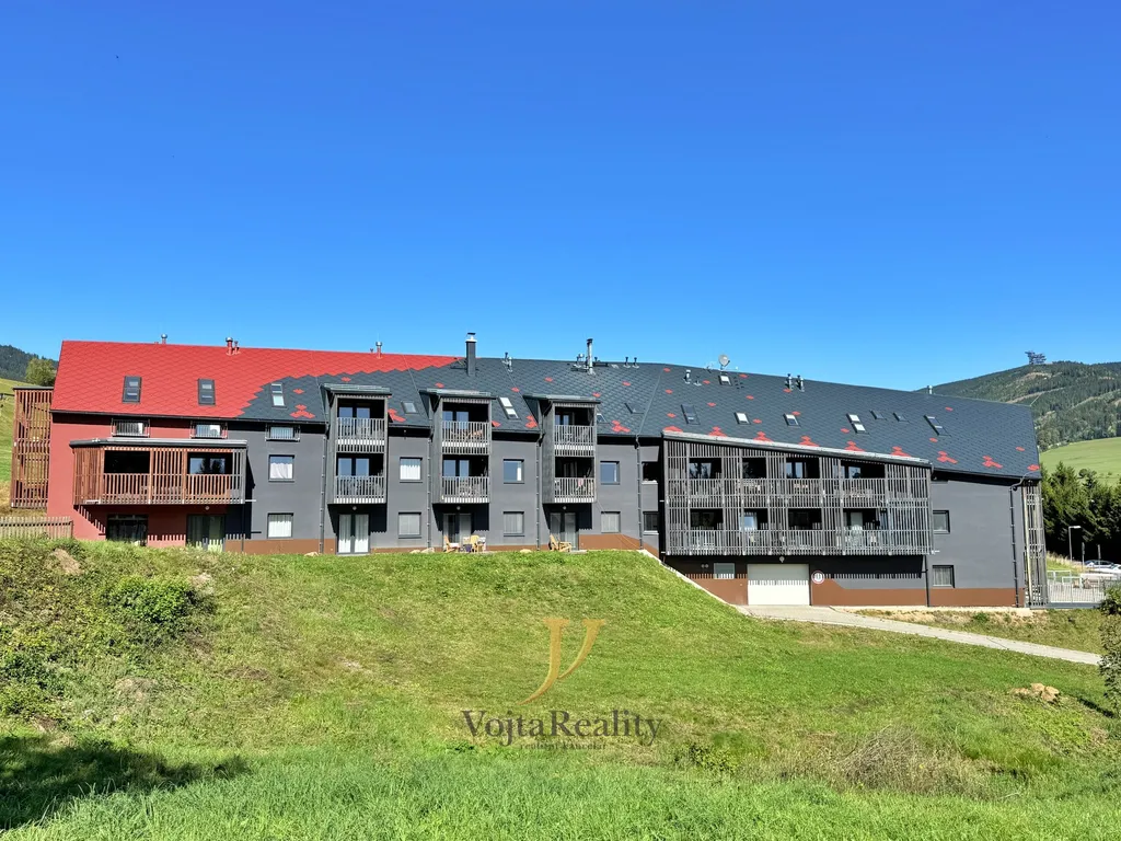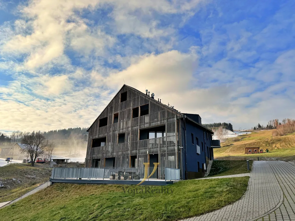 Nabízíme k prodeji moderní mezonetový apartmán 3+kk o velikosti 82 m² s balkonem (3,5 m²) a vlastním sklepem s elektřinou (3,5 m²), umístěný ve 3. nadzemním podlaží domu s výtahem a lyžárnou, přímo u sjezdovky Větrný vrch.