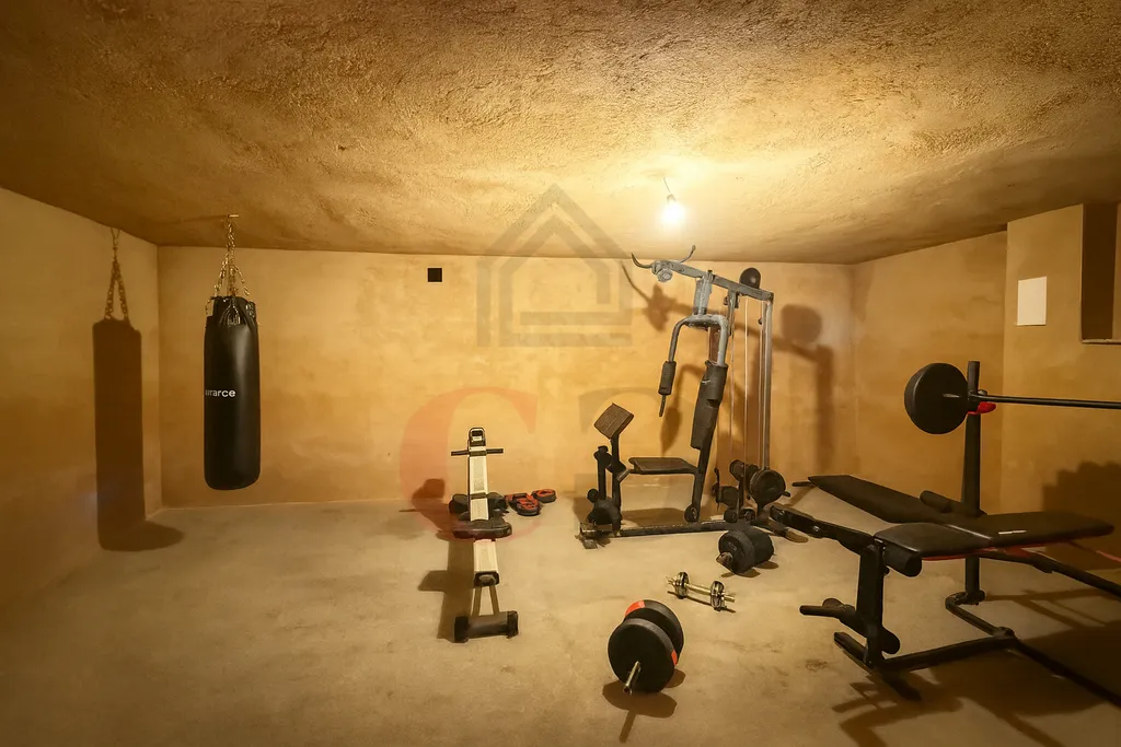 V přízemí dále najdete posilovnu a místnost vhodnou pro posezení s přáteli. Výhodou je také přilehlá garáž.