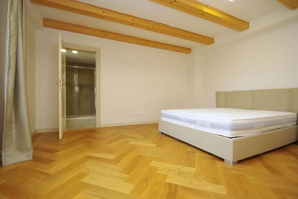 Prostorný klimatizovaný moderní byt 3+kk (2 ložnice, 3 koupelny), o celkové ploše 199 m2, je situovaný ve 4. patře zrekonstruované rezidenční budovy, která disponuje plně vybavenou posilovnou a je umístěna v atraktivní lokalitě Praha 1 Nové Město, v Bolzanově ulici.