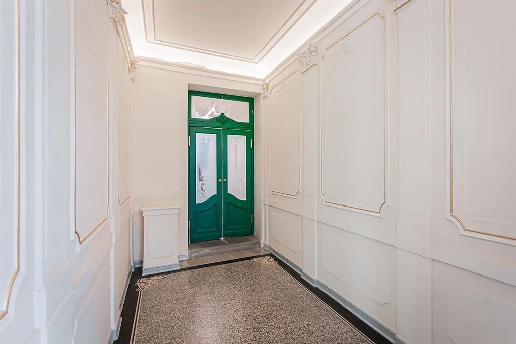 Zrekonstruovaný světlý byt 2+kk (1 ložnice, 1 koupelna) se šatnou, o celkové ploše 51,7 m2, je situován ve 2. patře zrekonstruované rezidenční budovy s výtahem v atraktivní lokalitě u parku Stromovka, na Praze 7 Bubeneč, ulice Šmeralova.
