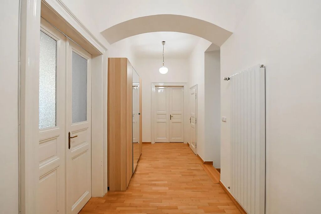 Nově zrekonstruovaný mezonetový byt 3+1 (2 ložnice, 2 koupelny), s balkónem, o celkové rozloze 118 m2, je situovaný ve 1. patře a v přízemí, rekonstruované rezidenční budovy s výtahem v populární lokalitě Praha 2 Vinohrady, v ulici Mánesova.