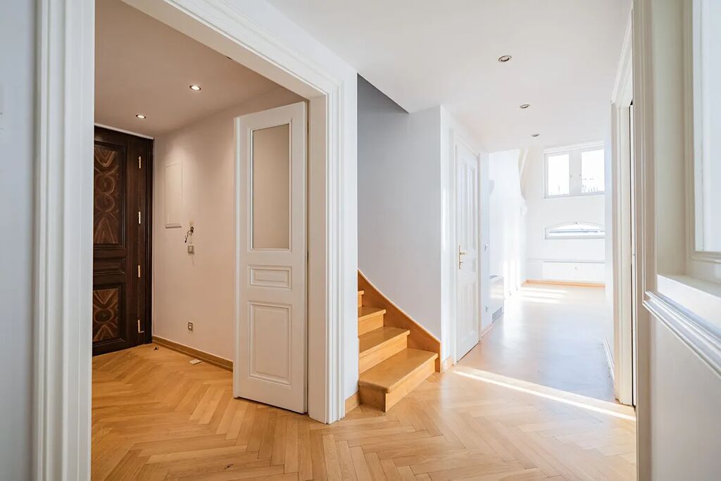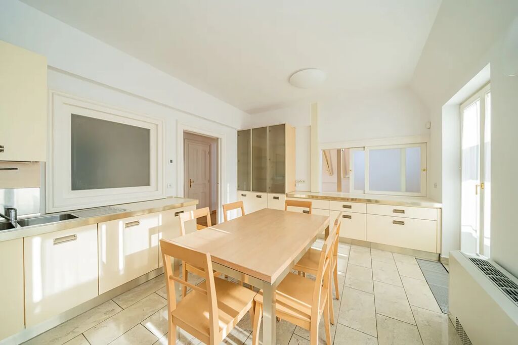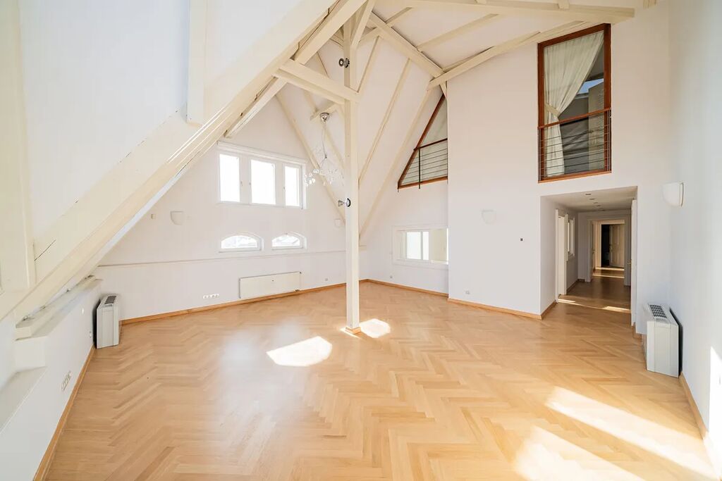 Luxusní podkrovní duplex 5+1 (3 ložnice, 3 koupelny), o celkové rozloze 265 m2, je situován v 5. a 6. patře zrekonstruované neorenesanční rezidenční budovy s výtahem a recepcí v prestižní lokalitě Malá Strana na Praze 5, v ulici Újezd.