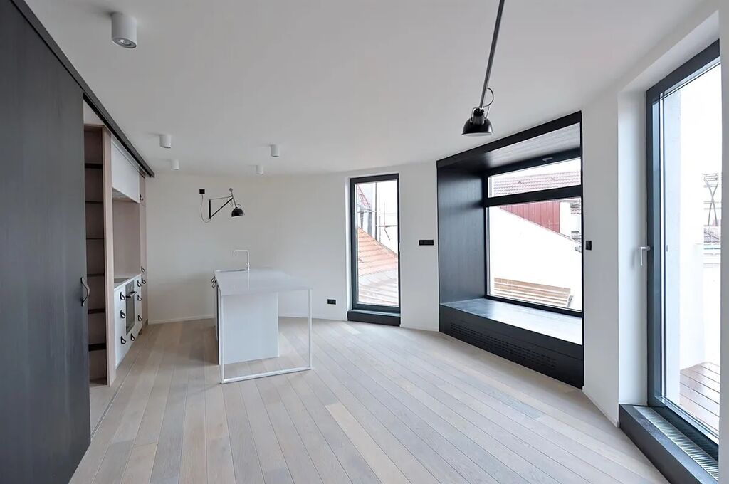 Luxusní moderní byt 2+kk se dvěma terasami (40m2 ; 60m2), je situovaný v prestižní rezidenční lokalitě Vinohrady. Byt je situovaný v 6.NP reprezentativního zrekonstruovaného domu s výtahem, přímo na náměstí Jiřího z Poděbrad.