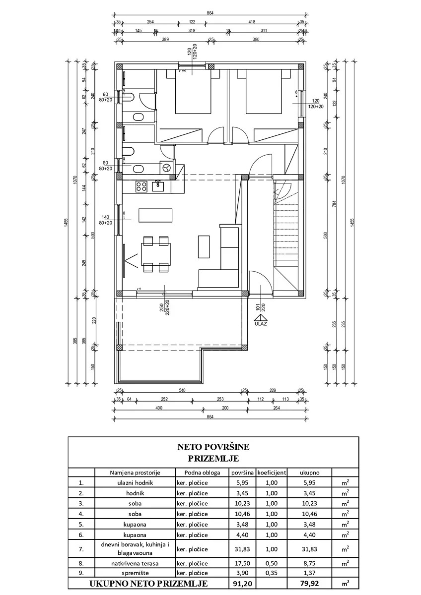 Apartmány budou vybaveny klimatizací v ložnicích a obývacím pokoji, elektrickým podlahovým vytápěním v koupelnách, bezpečnostními dveřmi, budou mít keramiku v celém apartmánu i na terasách, elektrické žaluzie, sítě proti komárům, interkom a LED osvětlení v apartmánu i na terasách. Nábytek v koupelnách bude vyrobený na míru a všechny terasy budou mít přípravu na jacuzzi (přívod i odvod vody). Vzdálenost od moře je přibližně 200 m.