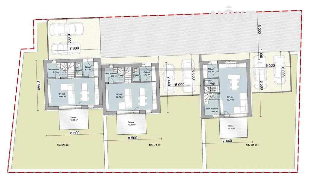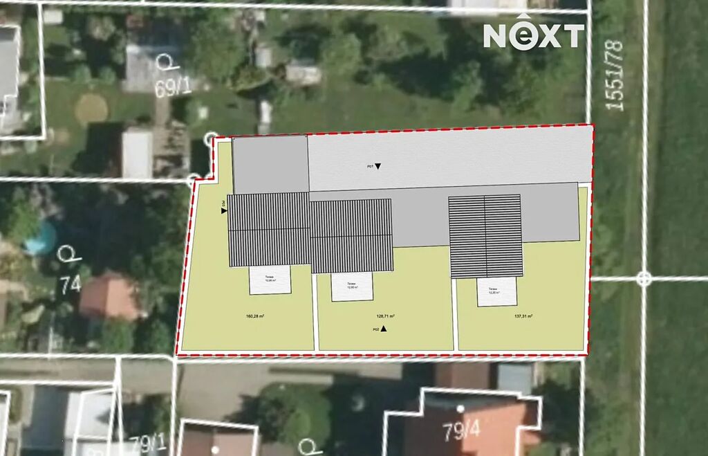 Tři rodinné domy s parkováním a pozemkem, každý za cenu 8.888.000 Kč, která obsahuje pozemek + RD na klíč, parkovací místa a 1/3 příjezdové ceny. Výstavba bude zahájena v příštím roce.