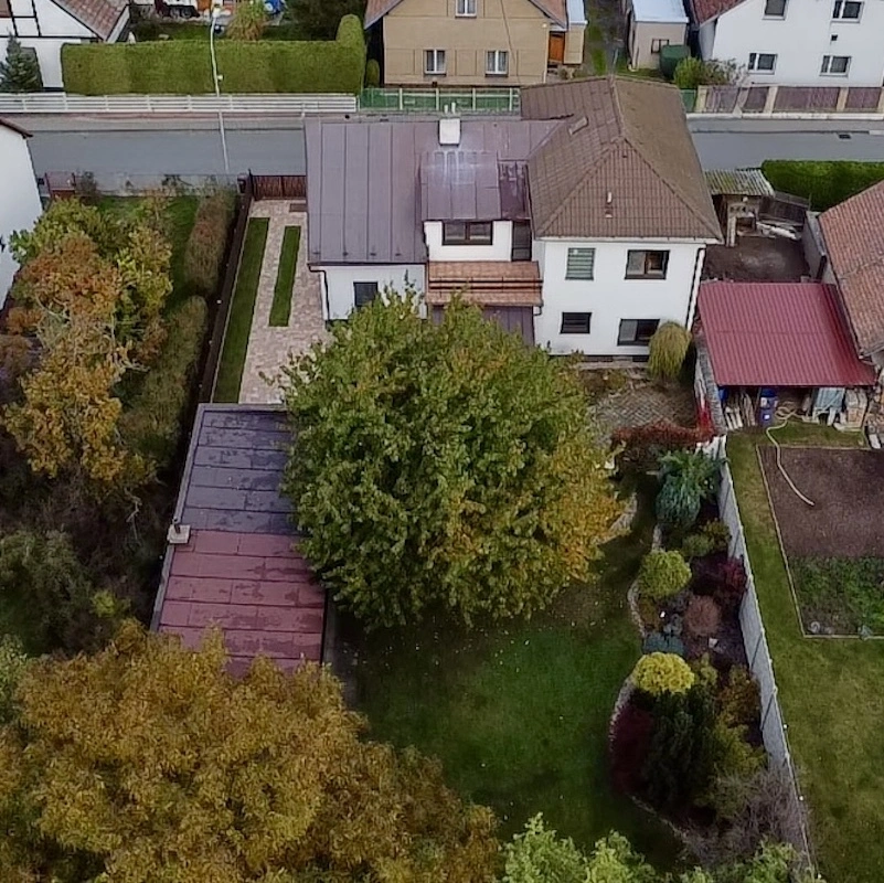 K domu náleží rozlehlá zahrada, která společně se zastavěnou plochou tvoří soubor pozemků. Zahrada je udržovaná, což vytváří příjemné prostředí pro odpočinek i pěstování. Na pozemku se nachází kopaná studna (hloubka 4,5 m, z roku 1928), kterou lze využít jako alternativní zdroj užitkové vody například pro zalévání zahrady. Pozemek je zcela oplocen (včetně kovových vjezdových vrat) a kolem domu jsou zpevněné plochy pro pohodlný příjezd a pohyb na dvoře. Dům je napojen na dostupné inženýrské sítě (veřejná voda, kanalizace, elektřina), takže nabízí veškerý komfort městské infrastruktury, kombinovaný s výhodami vlastní zahrady a studny.