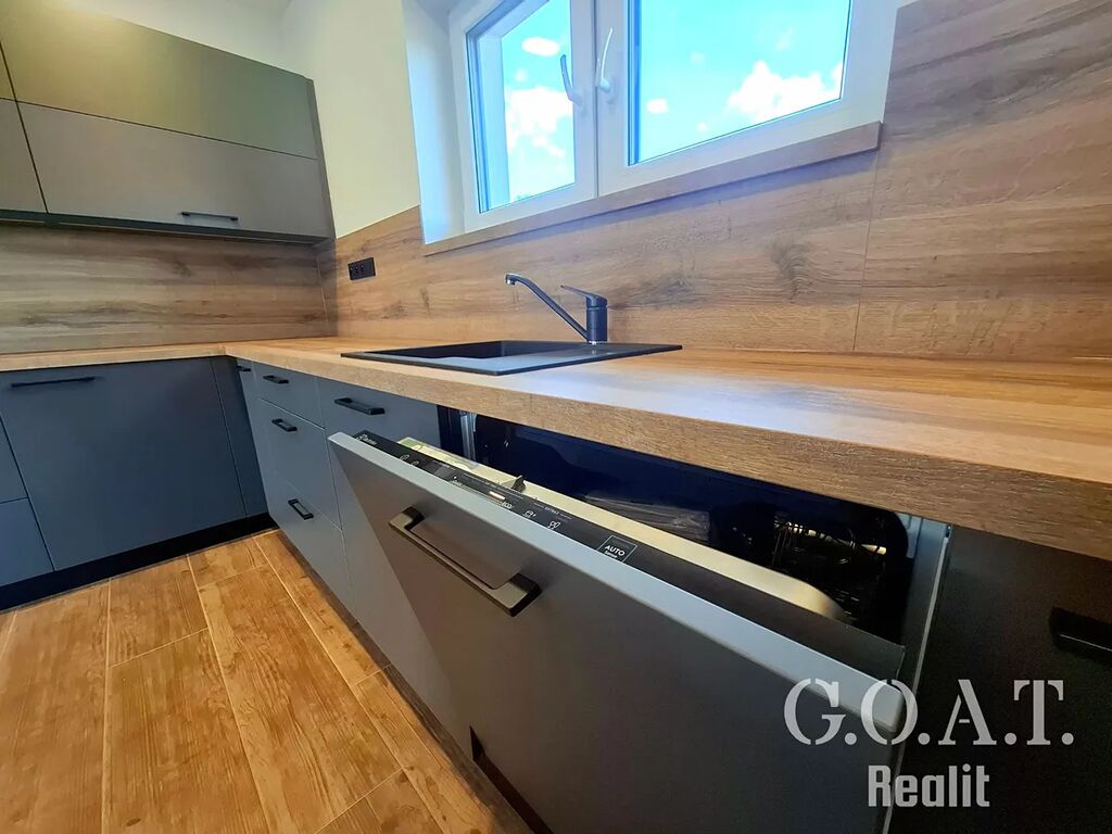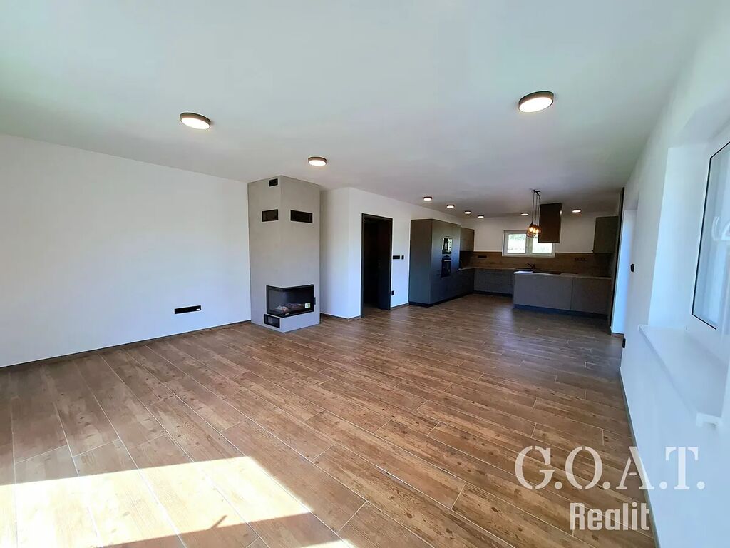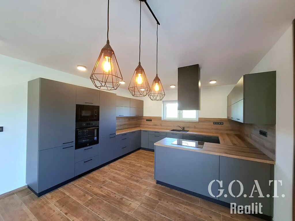 Srdcem domu je velkorysý obývací pokoj s kuchyňským koutem (47 m²) s luxusní kuchyňskou linkou a kompletní sadou vestavěných spotřebičů. Přímý vstup na terasu s pergolou láká k relaxaci i letnímu posezení s výhledem.