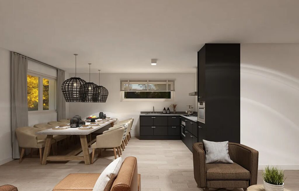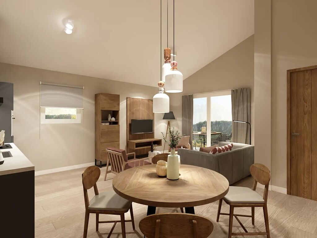 Každý chalet bude novému majiteli předán kompletně vybavený nejmodernějším nábytkem, doplňky, vysoce kvalitní kuchyňskou linkou a kompletně vybavenými koupelnami.