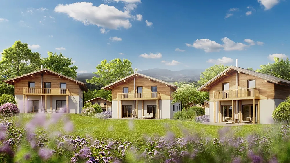 Resort rodinných chaletů ve sportovním ráji! V bezprostřední blízkosti aquaparku, saunového světa a tenisových kurtů. Běžkařské stopy jsou také hned u resortu. A od lyžařských areálů Velký Javor a Špičák Vás dělí pouhých 20 minut jízdy autem! K výhodám se řadí i skvělá dostupnost z ČR – z Prahy do svého nového domova dorazíte za 2 hodiny a 45 minut.