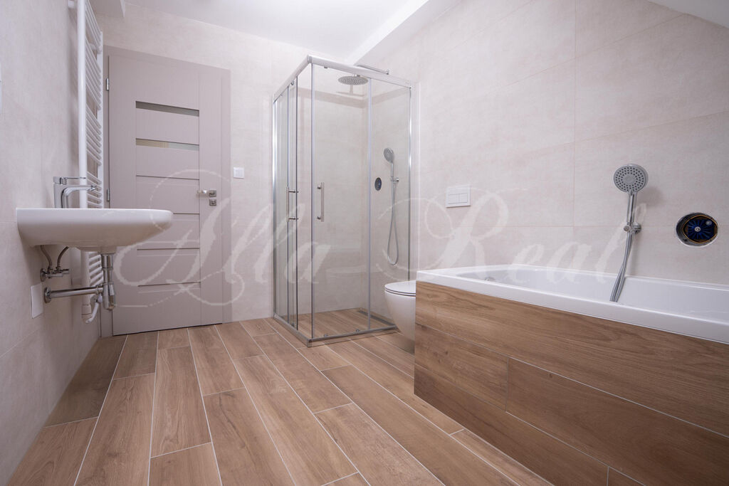 Velká terasa o velikosti 39 m² je skvělým místem pro relaxaci, grilování nebo rodinné setkání. Soukromé parkovací místo vám zaručí pohodlí a nezávislost. Vstup přímo z domu vás přenese do atmosféry rodinného bydlení, avšak ve všech ohledech je to praktický byt. Díky třídě A je nákladově efektivní na energie, což oceníte hlavně při dlouhodobém užívání. Rychlý přístup do centra Brna je možný jak autem, tak MHD – jen 15 minut jízdy. Horní patro je vybavené moderní klimatizací, která udrží vnitřní prostředí příjemné po celý rok.