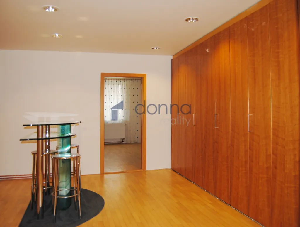 Prostory sestávají ze tří samostatných místností, vstupní chodby, haly ve které je umístěna kuchyňská linka a velká vestavěná policová skříň, wc, koupelny se sprchovým koutem.