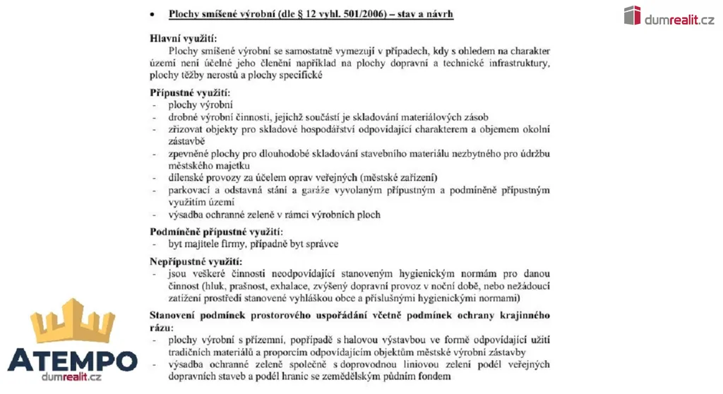 Dumrealit.cz Vám zprostředkuje prodej rovinatých stavebních pozemků od 7.331 m² (1 m²/1.500,-Kč) určených dle platného územního plánu ke smíšené výrobě v průmyslovém areálu ve městě Bavorov, ul. Tírenská. Příjezd je zajištěn věcným břemenem přes komunikaci v osobním vlastnictví. Na pozemku bude vyvedena elektrická sít s dostatkem příkonu. Vodovod a kanalizace jsou na hranici areálu (viz výstřižek z územního plánu mezi fotografiemi). Prodávané pozemky jsou o výměrách: 7331 m², 7.324 m², 10.981 m², 9.693 m², 11.334 m² a 7.605 m². K dispozici máme územní plán s možnostmi výstavby na pozemku. Více informací Vám poskytne realitní makléř Tomáš Pelda z realitní kanceláře A TEMPO fungující pod ochrannou známkou dumrealit.cz. Ev. číslo: 653222.