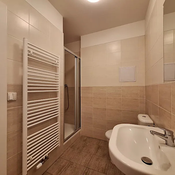 Byt se pronajímá nezařízený, ale vybaven kuchyňskou linkou se spotřebiči (horkovzdušná el.trouba, sklokeramická varná deska, odsavač par, velká kombinovaná lednice). Koupelna disponuje sprchovým koutem a toaletou dohromady. Na podlahách byla použita plovoucí podlaha a dlažba. Všechna okna jsou směřována do klidného vnitrobloku. K bytu náleží sklep. Nájemník může využívat společný, malý dvorek k posezení u domu. Bydlení je vhodné pro jednotlivce, pár, či rodinu s 1 malým dítětem . V okolí veškerá občanská vybavenost - restaurace, obchody, kavárny, sport centrum Squash Holešovice, golfové hřiště (driving range) Rohanský ostrov, Galerie moderního umění DOX, známá Pražská tržnice a mnoho divadel a hudebních klubů – SaSaZu, divadlo La Fabrika , Rock Opera a mnoho dalších možností. V blízkosti je cyklostezka vedoucí do Troje a přes Libeňský most pokračující do Vysočan a Hloubětína. Rychlé dopravní spojení do centra – pár zastávek tramvají k metru Vltavská, Palmovka a Nádraží Holešovice.