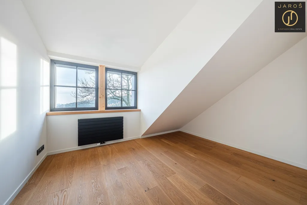 V dolním podlaží se nachází prostorná ložnice, koupelna s moderním vybavením a samostatné WC. O patro výš se otevírá světlý obývací prostor s kuchyňským koutem, velkými okny a krásným průchodem světla. Druhý pokoj je ideální jako dětský pokoj, hostovská místnost či pracovna. Dispozice byla navržena tak, aby splňovala požadavky celoročního rekreačního bydlení i dlouhodobého rodinného užívání, a zároveň poskytovala nadstandardní investiční potenciál v rámci krátkodobých pronájmů.