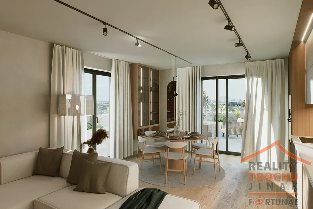 V novém developerském projektu rezidence Kristian Vám nabízíme prodej, moderního a nízkoenergetického bydlení v bytu 4+kk s balkónem ve vyhledávané lokalitě v Hradci Králové – Moravské Předměstí. Bytová jednotka se nachází ve 2. NP zděného bytového domu, celková užitná plocha 113,3 m2, 2 x balkón (5,7 m2 a 4 m2), 1x šatna (4,6 m2). K bytu náleží 1x vnitřní parkovací stání. Dispozice: vstupní chodba, obývací pokoj s kuchyňským koutem, jídelnou, 3x pokoj, koupelna s WC, WC, šatna. Vytápění: ústřední dálkové. Ve standardním provedení: plastová okna hranatá s izolačním trojsklem, vinylové podlahy KPP – výběr z 12 typů dekorů, koupelna s keramickou dlažbou La Ceramica Factory – výběr ze 4 dekorů, obklady Rako Systém, umyvadlo keramické se stojánkovou pákovou baterií, vana bílá akrylátová obdélníková. WC závěsné bílé. Použité materiály kombinují moderní technologie a udržitelnost a především snižují energetické náklady.