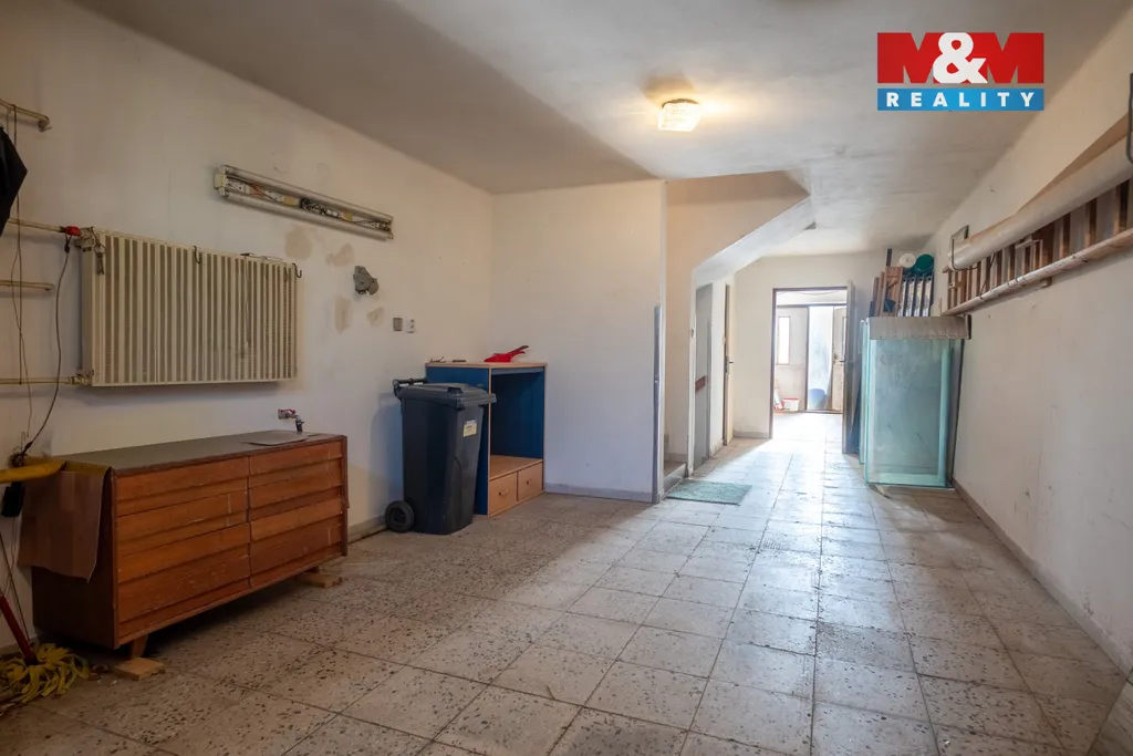 Ve sklepních prostorách se nachází kompletní technické zázemí. Součástí domu je garáž, na kterou navazuje dílna a průchod na zahradu se skleníkem.