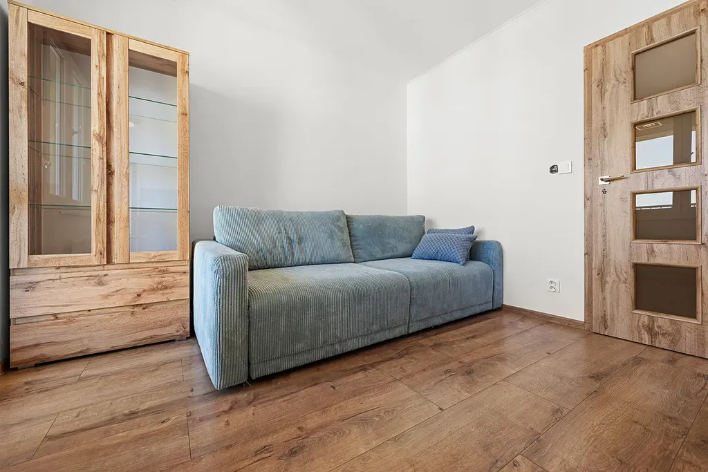 Ložnice je vybavena skříní a postelí. Byt prošel rekonstrukcí a pronajímá se včetně nábytku – stačí se jen nastěhovat. Dispozice bytu nabízí pohodlné bydlení pro jednotlivce nebo pár.