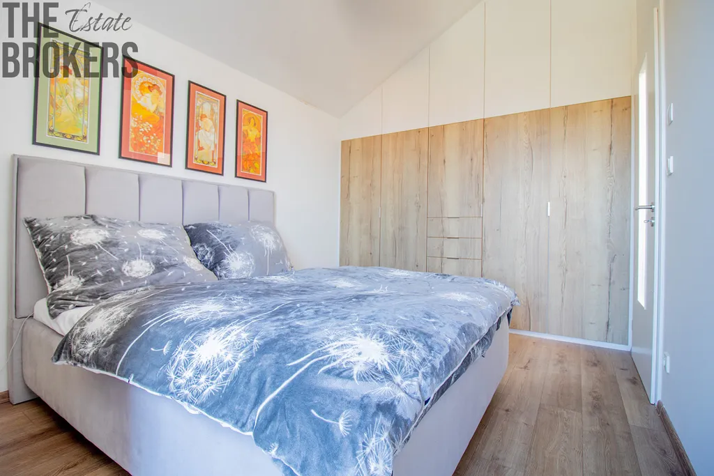 V interiéru se můžete těšit na vzdušné stropy. Na podlahách je kvalitní laminátová podlaha s podlahovým vytápěním, které zajišťuje dlouhou životnost a snadnou údržbu. K vytápění a ohřevu vody slouží tepelné čerpadlo, což znamená nízké náklady na energie.