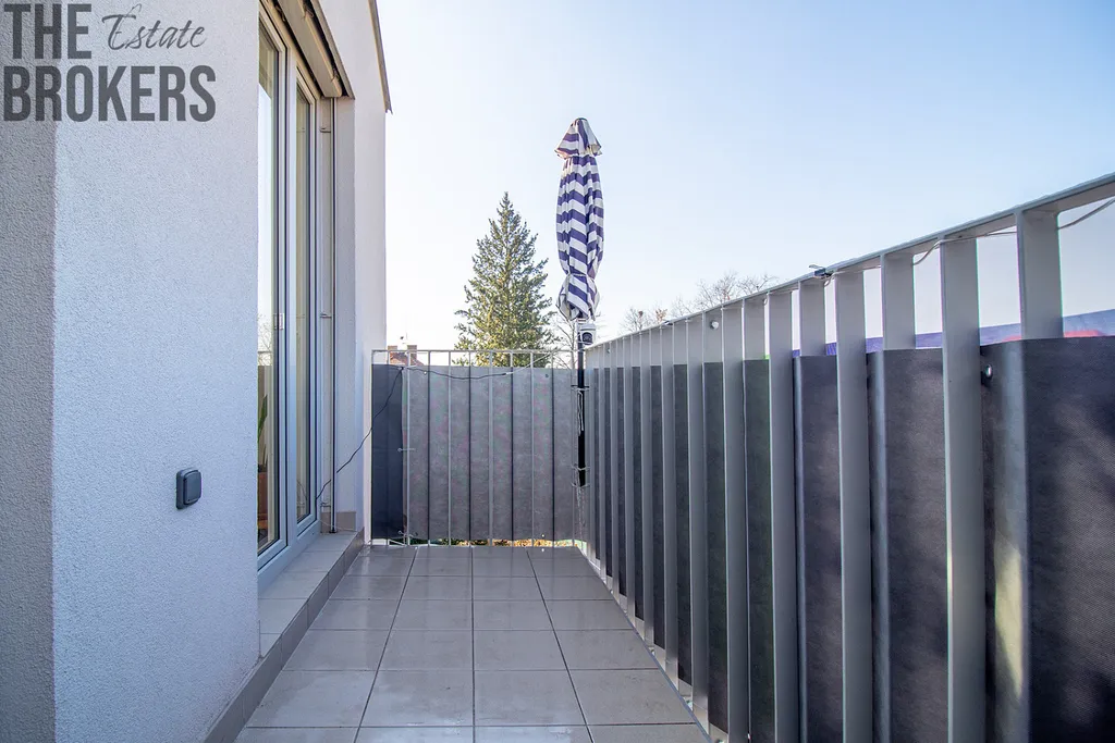Byt zaujme obývacím pokojem s elegantní kuchyňskou linkou vybavenou spotřebiči značky Electrolux. K dispozici je hlavní ložnice s přímým vstupem na balkon o velikosti 6,08 m². Byt dále nabízí moderní koupelnu vybavenou sprchovým koutem a toaletou.