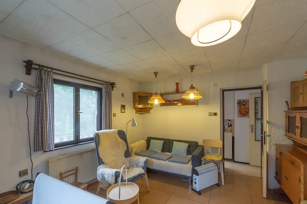 • Suterén (1.PP): chodba se schodištěm (4,9 m²), kotelna se skladem na palivo (24 m²), místnost na uskladnění zavařenin (11 m²), dílna se soustruhem (24 m²).
