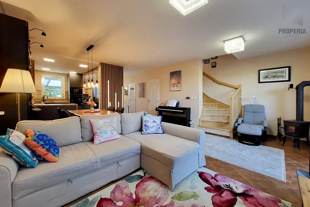 Vytápění i ohřev vody zajišťuje plynový kotel. V přízemí je podlahové vytápění a krbová kamna, která zpříjemňují atmosféru v celém domě. Velmi nízké náklady na energie.