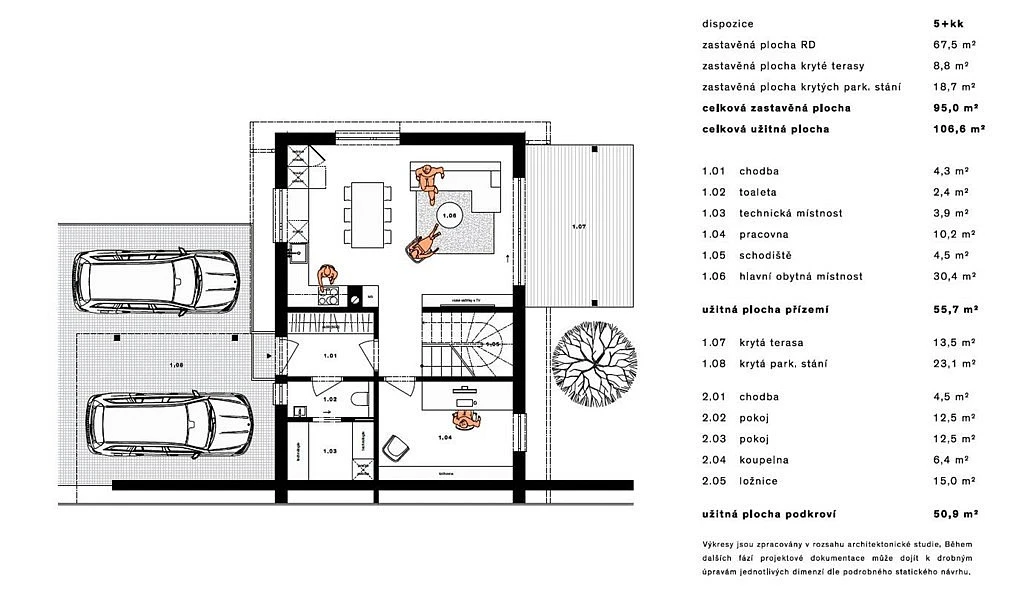 * Dvoupodlažní koncepce = více prostoru a soukromí