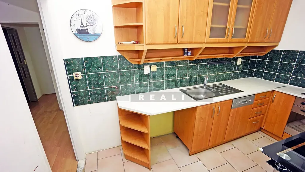 Podlahu v kuchyni, v chodbě, v koupelně a na WC pokrývá dlažba. V pokojích je plovoucí podlaha.