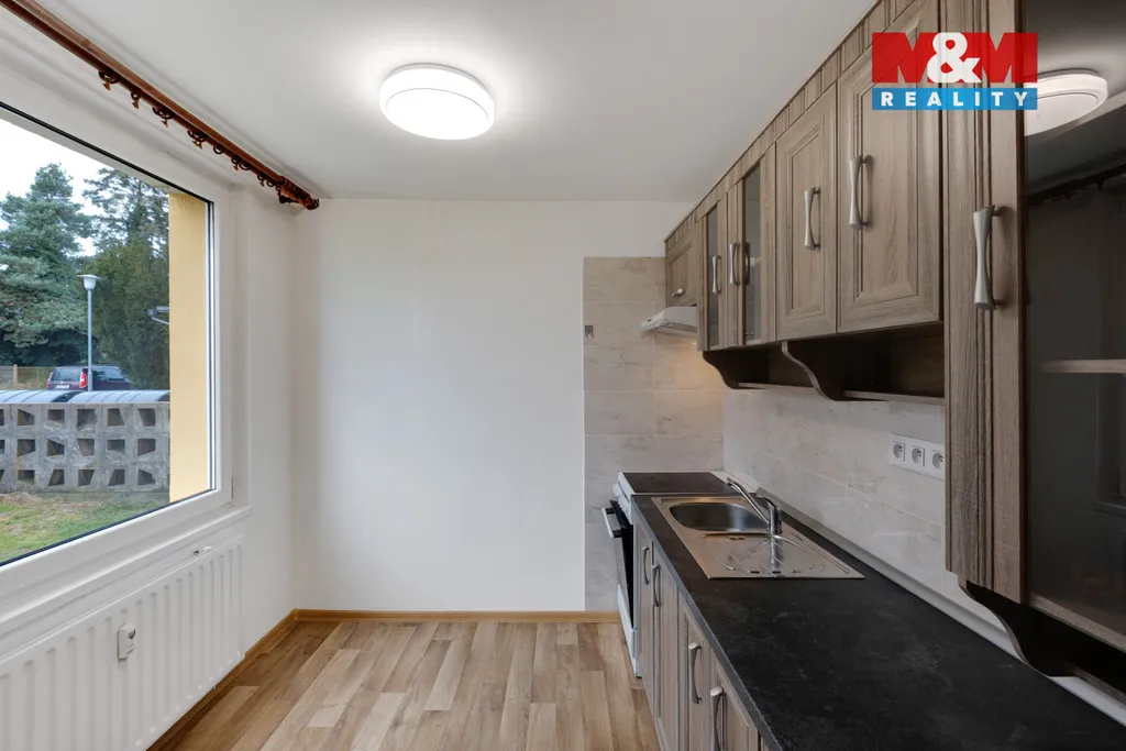 K prodeji světlý, přízemní byt o dispozici 3+1, který je umístěn v klidné části města Žebrák. Byt prošel v minulosti částečnou rekonstrukcí, nový rozvod elektroinstalace a rozvody vody, odpadu. Původní umakartové jádro je obloženo sádrokartonem, keramickým obkladem sprchový kout, prostor na pračku. Plovoucí podlahy, nové dveře a kuchyňská linka. Omítky na zdech je nutno opravit. Byt je prostorný, nabízí šikovnou dispozici a náleží k němu dvě komory naproti bytu a sklepní kóje (4 m2) v suterénu domu. Dům je zateplený a má kompletně novou střechu. Podlahová plocha bytu činí 70 m2, dvě praktické komory 1,6 a 1 m. Klidná lokalita s veškerou vybaveností v docházkové vzdálenosti, blízký nájezd na dálnici D5 směr Praha, Plzeň. Výhodou domu je vlastní kotel, který umožňuje ekonomičtější provoz za vytápění a teplou vodu. Okolí obklopené přírodou, hrad Točník cca 3 km. Byt je prázdný, ihned volný.