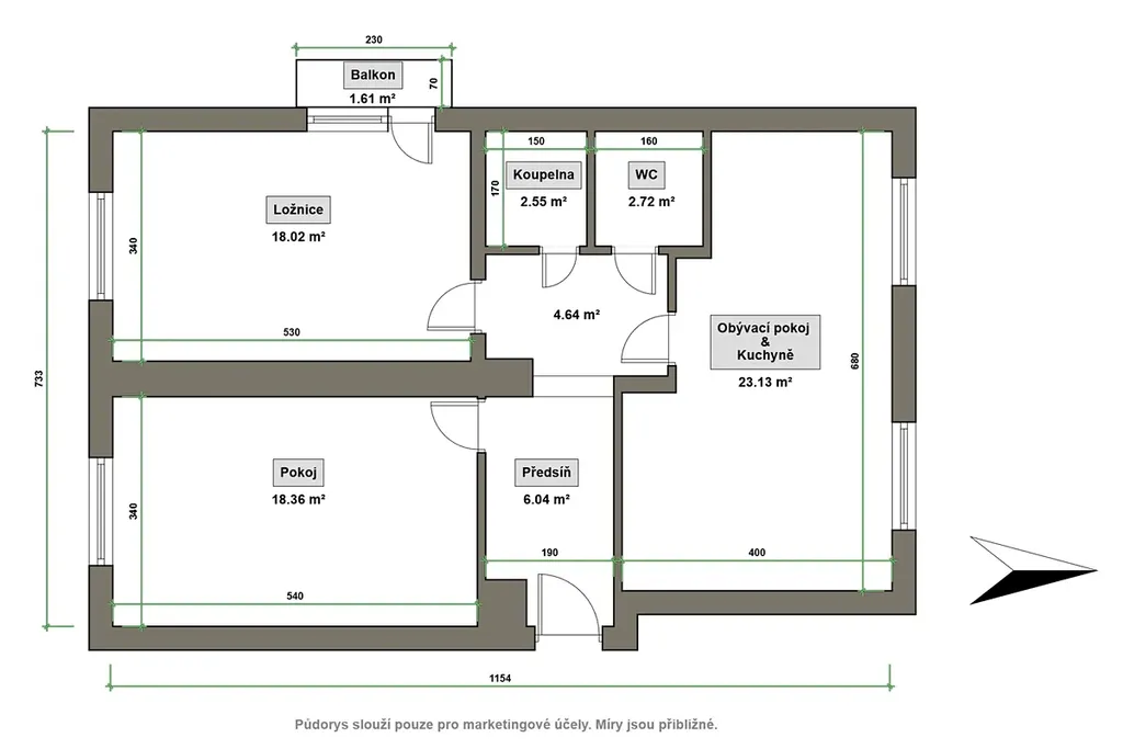 Prohlídky a návštěva bytu jsou možné po dohodě s makléřkou Martinou.