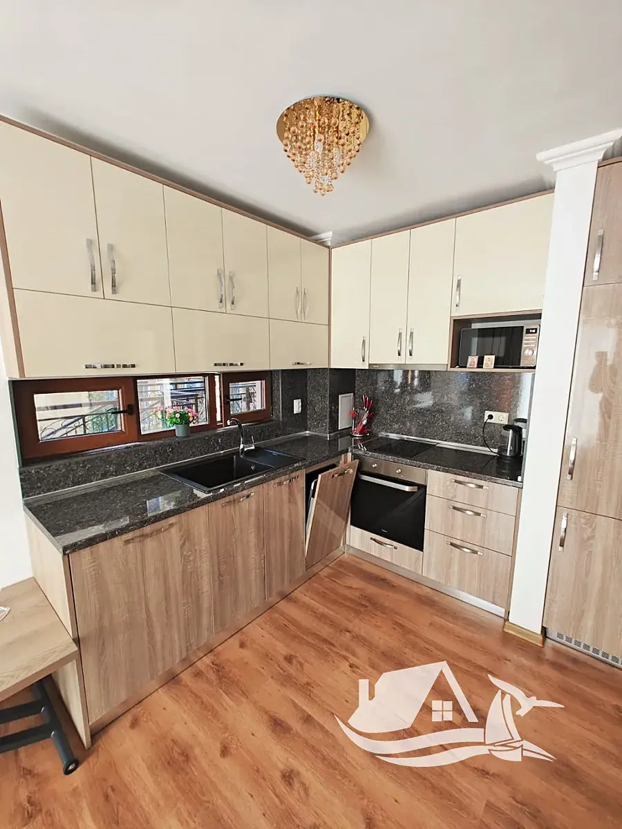 Byt působí příjemně a vzdušně – ideální jak pro rodinné pobyty u moře, tak pro celoroční bydlení v klidné části letoviska. Terasa je místem, kde se ráno setkáte u kávy a večer necháte den tiše doznít.