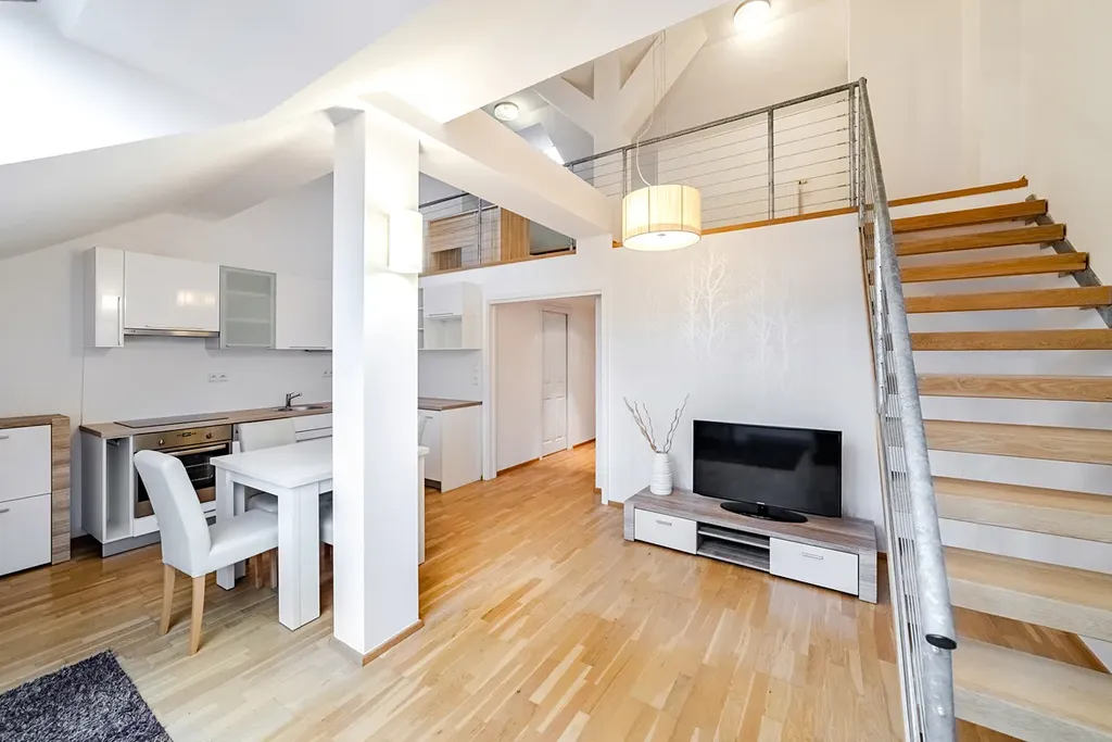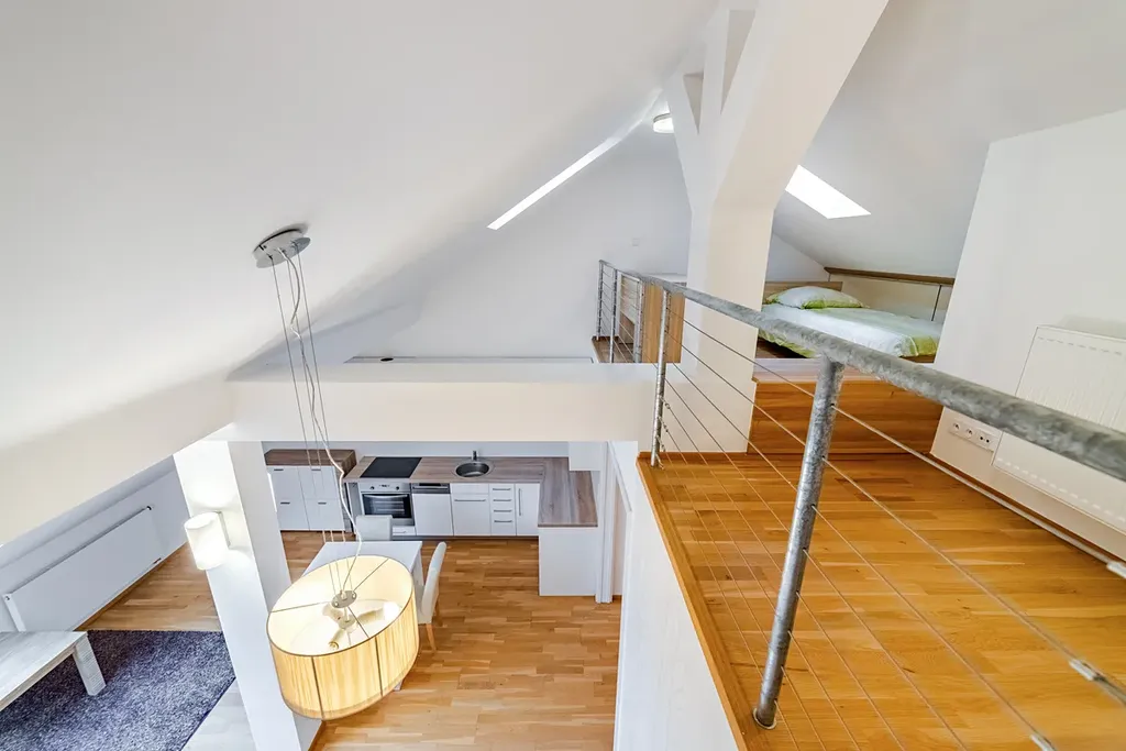 o Druhá ložnice se nachází na galerii mezonetu a má charakter open space, ideální jako ložnice, pracovna či ateliér.