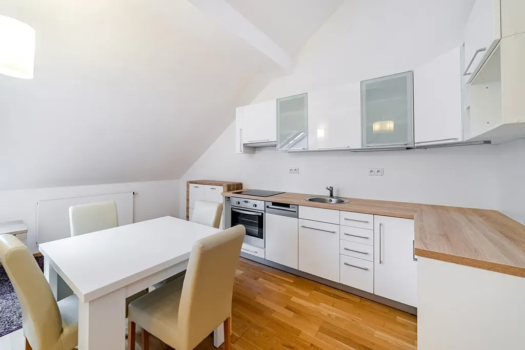 • Prostorný obývací prostor s kuchyňským koutem, vybaveným moderními spotřebiči včetně myčky.