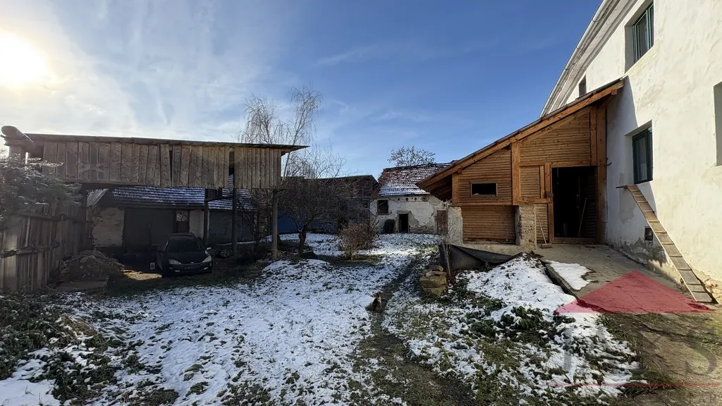 Vedlejší stavby: navazující výminek (havarijní stav) s vlastním vstupem, hospodářská část – stodola, chlív, maštale, parkování zem. strojů, aktuálně užívaný jako parkoviště.