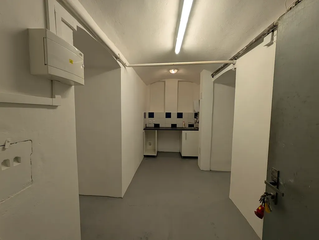 Nabízíme k pronájmu prostory v suterénu domu V Sochařské ulici. Prostory o celkové ploše 37m2 jsou po rekonstrukci ve velmi dobrém stavu, součástí vybavení je jednochá kuchyňská linka bez spotřebičů a samostatné WC. Vytápění je řešené elektrickými přímotopy, v prostoru je rozvod 400V a odvětrání části prostoru situované do vnitrobloku. Prostory je možné využít na drobnou nerušící výrobu, dílnu, ateliér..., možnost využití vždy záleží na dohodě s majitelem. Přístup je výhradně domem a po schodech, není tedy možná rozsáhlá výroba nebo sklad s velkým pohybem materiálu. Ve fotogalerii naleznete virtuální prohlídku s možností zapnutí měření a zobrazení plánku prostor.