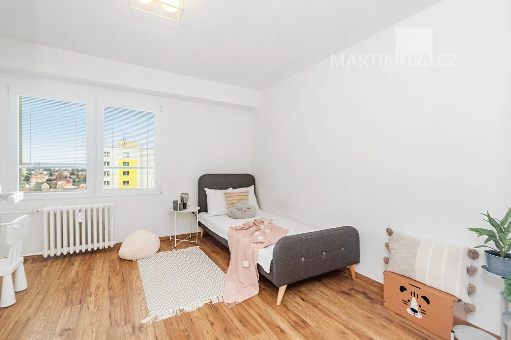 Jsme v Poděbradech, v bytě 3+1 o užitné ploše přes 86 metrů, s příslušenstvím dokonce 94. Po kompletní moderní rekonstrukci, v jedenáctém - předposledním - patře zatepleného panelového domu. V praxi to znamená: spousta světla, výhledy, ticho – a žádné starosti.