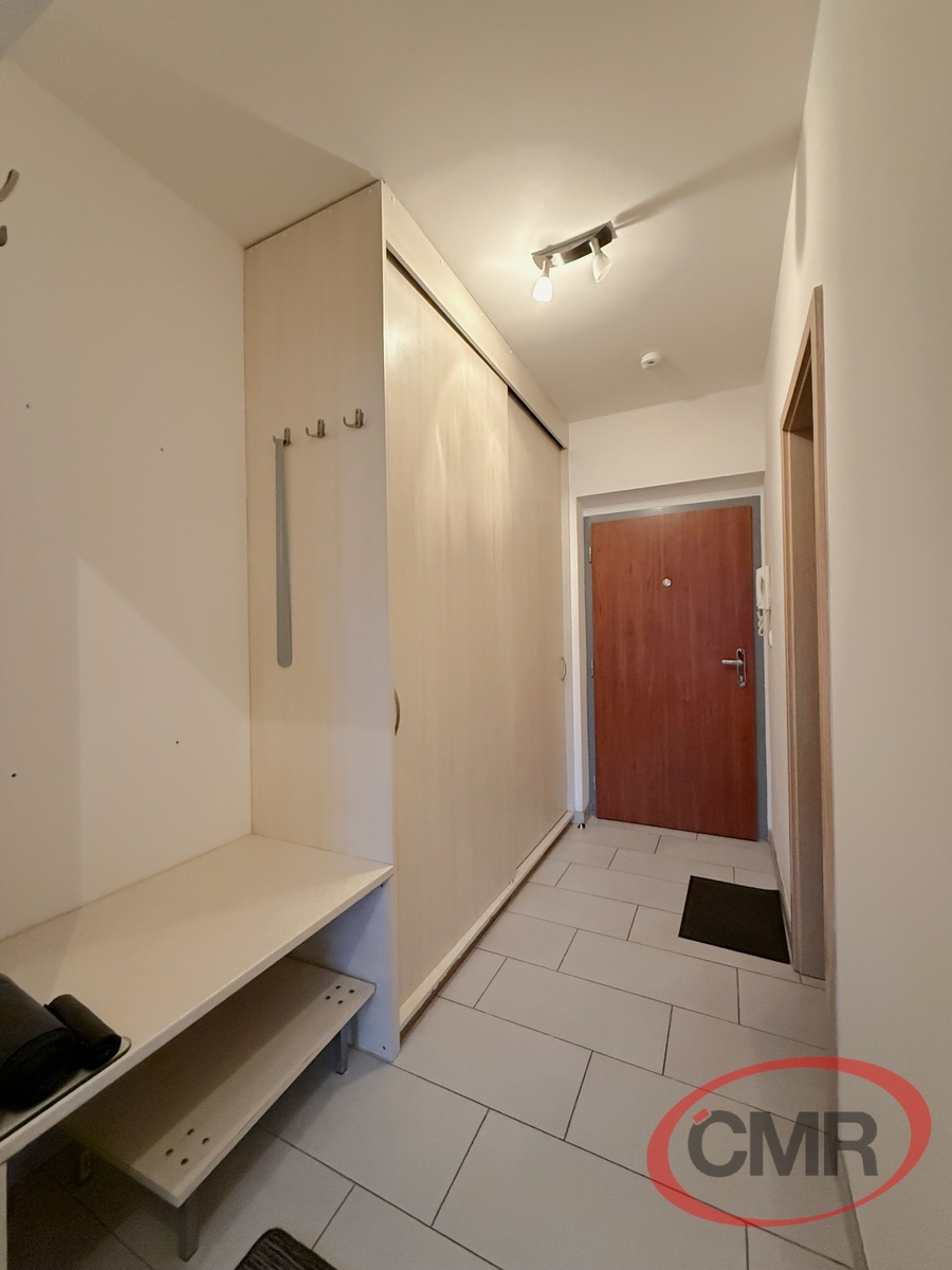 Ložnice je vybavena manželskou postelí a nočními stolky. Velkou výhodou bytu je prostorná vstupní chodba, kde jsou umístěny dvě velké vestavěné skříně s dostatkem úložného prostoru. Koupelna je moderní, se sprchovým koutem, toaletou, koupelnovým nábytkem a součástí vybavení je také pračka.
