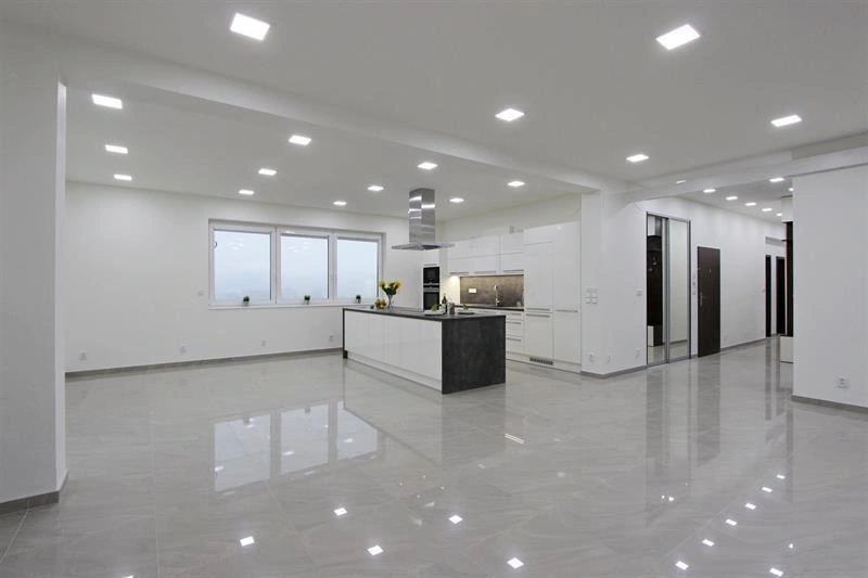 Obývací část, ložnice a dětské pokoje/pracovny jsou bez vybavení.