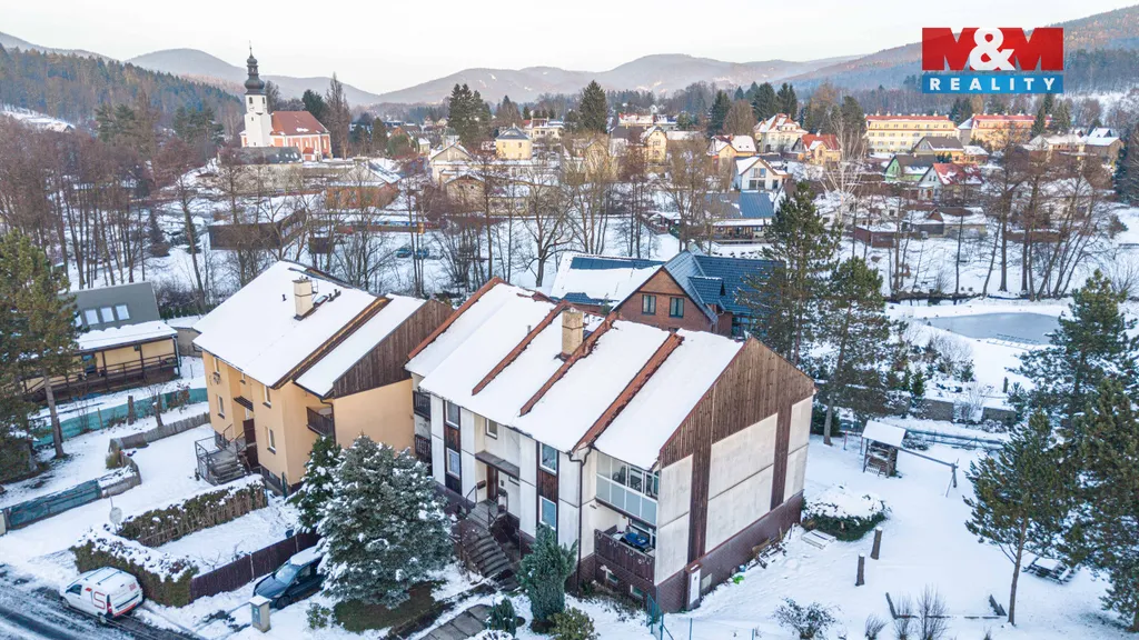 Nabízíme k prodeji prostorný byt 3+1 v klidné části obce Mníšek u Liberce. Tento útulný byt o užitné ploše 82 m² se nachází ve dřevostavbě na druhém nadzemním podlaží třípodlažního domu. K bytu náleží také 25% podílu na společných prostorech a pozemcích, což zahrnuje zahradu s posezením, garáž s elektrickými vraty a parkovací stání. Byt disponuje třemi pokoji, jídelnou, kuchyní, předsíní, chodbou a dvěma komorami. K tomu nabízí dvě lodžie s orientací na východ a západ, což ideální pro relaxaci. Vytápění je zajištěno vlastním plynovým etážovým kotlem. K dispozici je také rozměrný sklep(kolárna) o 16 m².Dům je napojen na všechny inženýrské sítě včetně internetu od O2. Stav nemovitosti je dobrý a je ideální pro rodinné bydlení v klidné lokalitě.