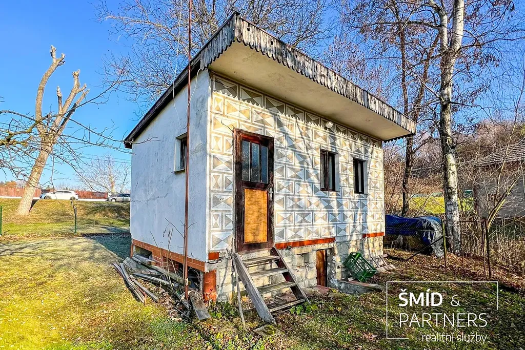 Krásný rovinatý pozemek za domem je osázen především ovocnými stromy, v zadní části pozemku je postaven zahradní domek, který je částečně podsklepen a je řádně zkolaudován. Jeho technický stav již vyžaduje opravu. Na pozemku je umístěno i ohniště, udírna, studna a menší kůlna.
