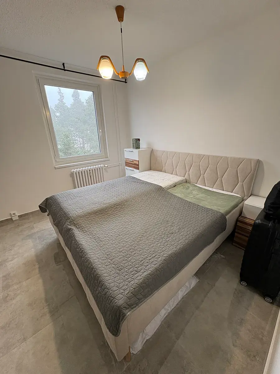 Ve výhradním zastoupení majitele nabízíme kompletně zařízený (dle fotografií) byt 3+1 po celkové rekonstrukci s podlahovou výměrou 73 m². V kuchyni je moderní kuchyňská linka s varnou deskou, vestavěnou troubou, ledničkou a myčkou. Byt disponuje dvěma neprůchozími ložnicemi a obývacím pokojem. V koupelně je sprchový kout a umyvadlo, pračka, toaleta je samostatná. Byt se nachází v 5. patře sedmipatrového panelového domu s novým výtahem, objekt prošel celkovou revitalizací. Byt je ihned volný k nastěhování.
