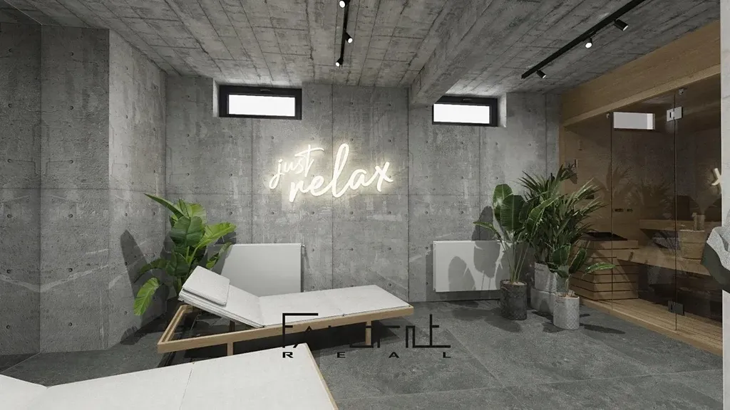 Novostavba je výjimečná díky soukromému wellness a fitness přímo v domě. Tyto prostory jsou určeny výhradně pro rezidenty a kombinují aktivní sportovní zónu pro cvičení a relaxační část pro odpočinek.