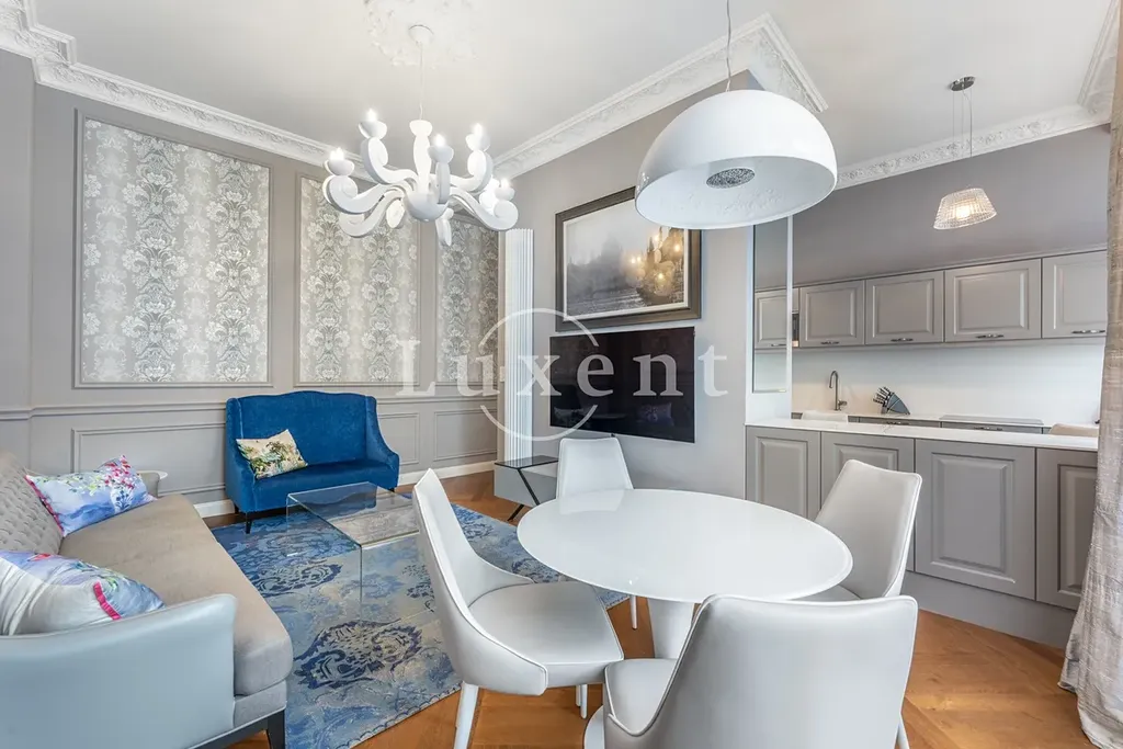 Nabízíme luxusně vybavený designový apartmán „Sapphire“ v nově zrekonstruovaném atraktivním historickém domě Rubin Palace, v srdci Karlových Varů, ve Vřídelní ulici na lázeňské kolonádě. Jedná se o byt ve 3. patře tohoto rezidenčního domu s výtahem. Byt o dispozici 3+kk má podlahovou plochu 91 m2 a dva balkony o velikosti celkem 7,5 m2.