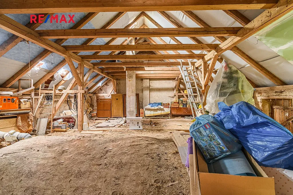 Dalším obytným prostorem o dispozici 3+kk je horní patro domu, které prošlo v roce 2010 rozsáhlou rekonstrukcí. Tato hezky řešená dispozice je rozšířena o další místnost vybudovanou v podkroví, přístupnou z jednoho z pokojů. Pojetí této povedené rekonstrukce krásně navazuje na styl přízemí domu a podtrhuje celkový dojem nemovitosti.