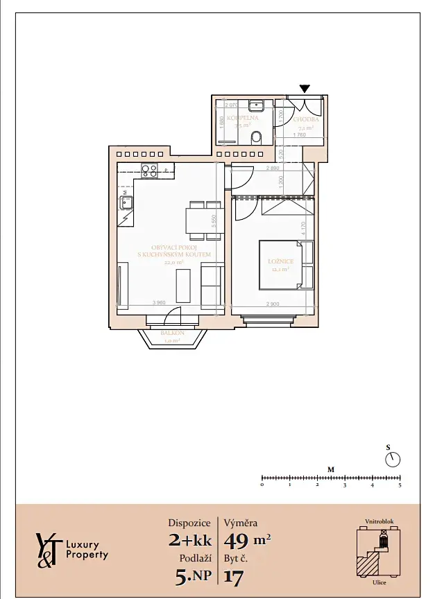 Nabízíme k pronájmu světlý byt 2+kk o velikosti 58,2 m² s balkonem ve zrekonstruovaném historizujícím činžovním domě s prvky neorenezance a rané secese z roku 1890 v noblesní lokalitě Prahy. Tento byt se nachází v 5. nadzemním podlaží s orientací do vnitrobloku a je vybaven hotovou koupelnou a kuchyňským koutem.