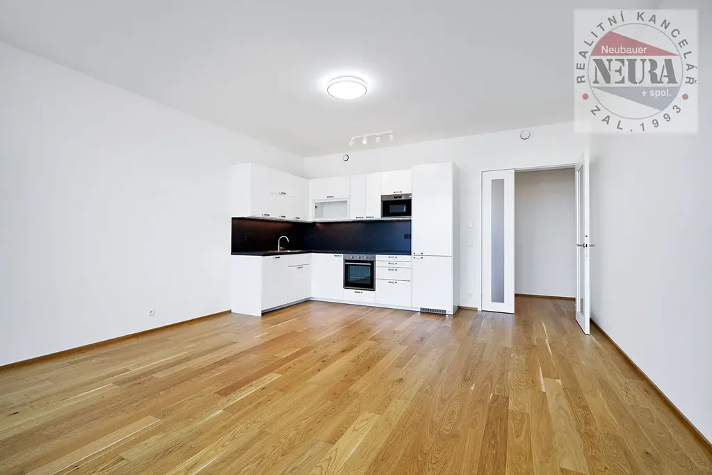 obývací pokoj s kuchyňským koutem a lodžií jsou orientovány na východ s krásným výhledem na řeku, ložnice je orientována na západ směrem do ulice Jankovcova, kuchyňská linka je včetně všech spotřebičů, koupelna s vanou a WC, dřevěné podlahy s podlahovým vytápěním, rekuperační jednotka a příprava na klimatizaci, bezfalcové dveře, elektricky ovládané venkovní žaluzie,