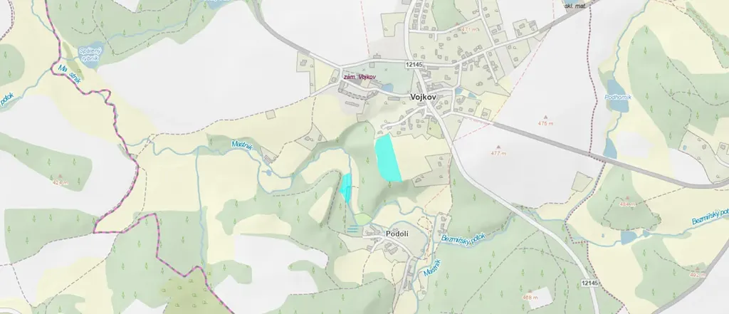 Předmětem dražby je ideální podíl 1/6 pozemků o celkové výměře 12625 m2 v k.ú. Vojkov u Votic, obec Vojkov, okres Benešov.