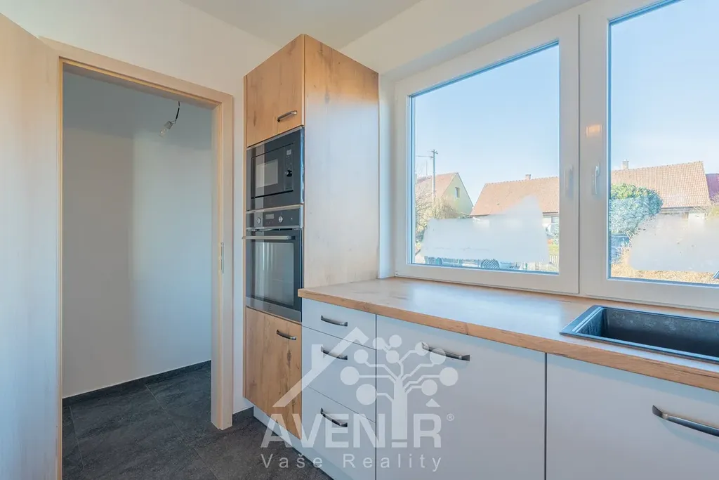 Dispozice 4+KK zahrnuje tři neprůchozí pokoje, kde má každý své soukromí. Srdcem domu je světlý obývací pokoj propojený s kuchyní. Velká francouzská okna pouští dovnitř množství přirozeného světla a vytváří vzdušný, uklidňující prostor. Stejně velkorysá francouzská okna najdete i ve dvou pokojích orientovaných na jihovýchod.
